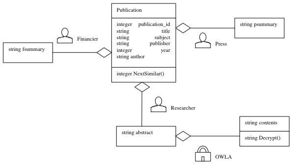 - here classes are hypermedia nodes, which define views to the underlying information and functionality (can be thought of as database queries)